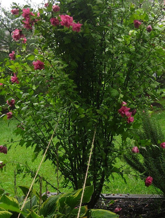 The rain and flooding were unbelievable! Uprighting the Rose of Sharon with the rope and protecting the salad table with the umbrella were execellent ideas!