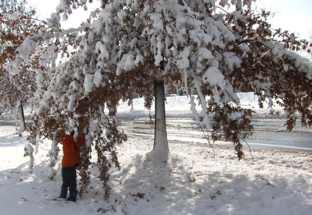 The oak trees in our neighborhood do not drop all their leaves in winter. I learned that it is a natural condition called marescence. Some experts believe that this protects the overwintering buds on the trees.