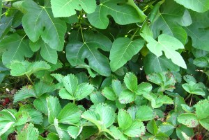 Snakes do not eat fruit, but they eat the critters (rodents, moles and chipmunks) that nibble our strawberries. Also, the fig leaves and strawberry plant leaves provide a cool hideout for the snake during the hot days. Although a bit frightening, the snake is a beneficial garden critter. It may even be more effective in protecting our strawberries than the netting!