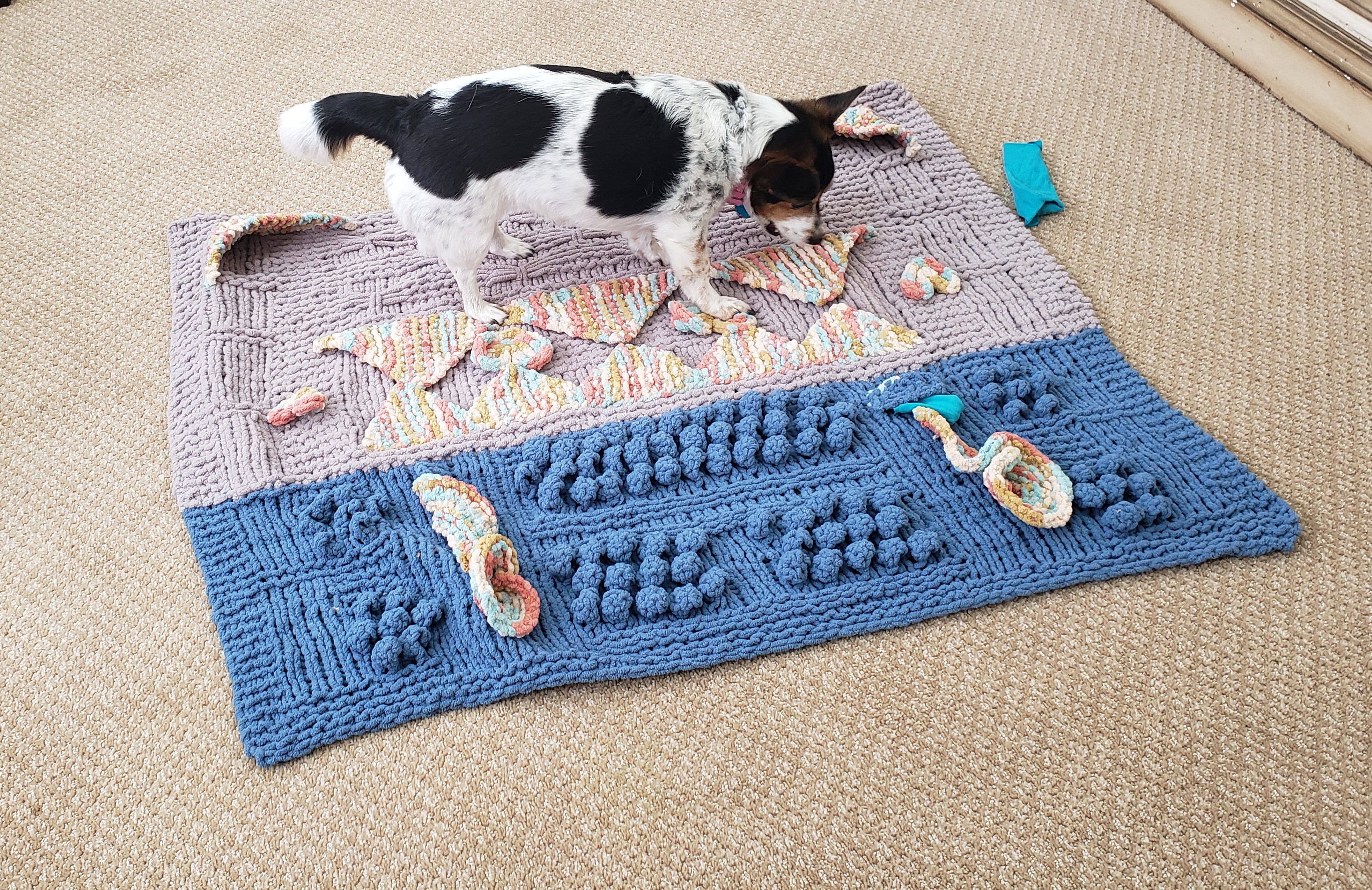 Here I am resting on my activity blanket after searching for treats for about 15 minutes. I feel like I have walked for one hour. I hope to have videos of me doing scent work and tricks on this page along with more thoughts from my perspective. For now, check out my first video on YouTube.
