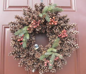 The wreath becomes fuller as the pine cones dry. Enjoy your homemade wreath. It will last a long time!